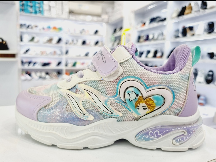 توضیحات محصول: این کفش ورزشی زیبا و شیک با طرح جذاب شخصیت السا از انیمیشن محبوب "فروزن"، مناسب برای کودکان و نوجوانان دختر است. طراحی منحصر به فرد و رنگهای شاد این کفش، آن را به انتخابی عالی برای فعالیتهای روزانه و ورزشی تبدیل کرده است. جنس کفش از مواد با کیفیت بالا تهیه شده و راحتی و دوام را برای استفاده طولانی مدت به ارمغان میآورد. ویژگیهای محصول: